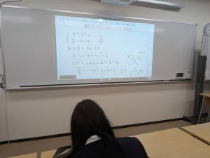 02月20日(高1) の授業内容です。今日は『数学Ⅱ・図形と方程式』の “円と直線の位置関係”、“円上の点における接線の方程式”、“円外の点から引いた接線の方程式” を中心に進めました。