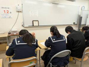 投稿日: 2026年2月26日 投稿者: manage02月26日(中3) の授業内容です。今日は『入試対策授業』の “関数とグラフ”、“図形と証明”、“規則性の問題”、“確率” を中心に進めました。 今日のポイントです。 ① 関数とグラフ 1. 変化の割合の読み取り 2. グラフから式を求める ② 図形と証明 1. 合同条件の使い分け 2. 証明の流れを整理 ③ 規則性の問題 1. 表や図で整理する 2. 一般化への考え方 ④ 確率 1. 場合の数の整理 2. 確率の基本計算 以上です。 さて今日もお疲れさまでした。 がんばっていきましょう。 質問があれば直接またはLINEでどうぞ!