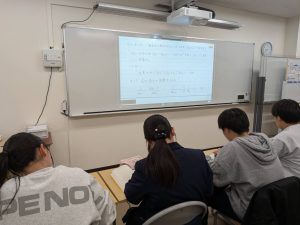 03月18日(高2理系) の授業内容です。 数列の中でも、入試で頻出となる「漸化式」に入りました。 ただ計算するだけでなく、「どの型かを見抜く力」が重要になります。 今日は、2項間・3項間それぞれの処理の流れを意識しながら進めました。 今日は『受験数学ⅠAⅡBC』の「線型2項間漸化式」、「線型3項間漸化式」を中心に進めました。