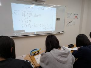 12月24日(高2理系) の授業内容です。今日は『数学Ⅲ・積分法』の “偶関数、奇関数と定積分”、“定積分の部分積分法”、“定積分と導関数” を中心に進めました。